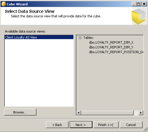 Открыть AS проект –> Project –> New Cube (пример разработки куба построен на данных таблиц, разработанных под пример отчета о лояльности клиентов)