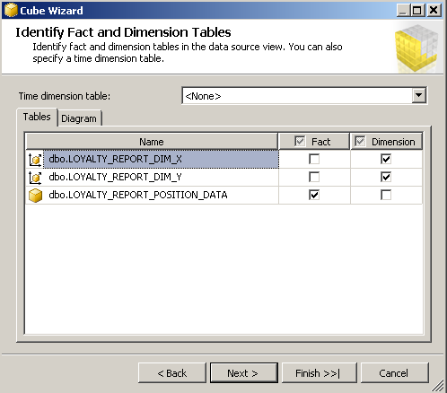 В окне Identify Fact and Dimension Tables это представлено в виде предложения, которое можно скорректировать.