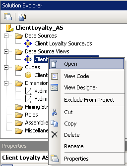 Найти и открыть искомый View источника данных: