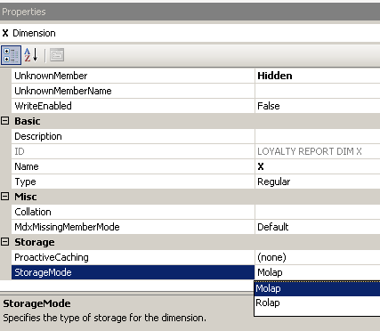 Задайте MOLAP или ROLAP свойству StorageMode: