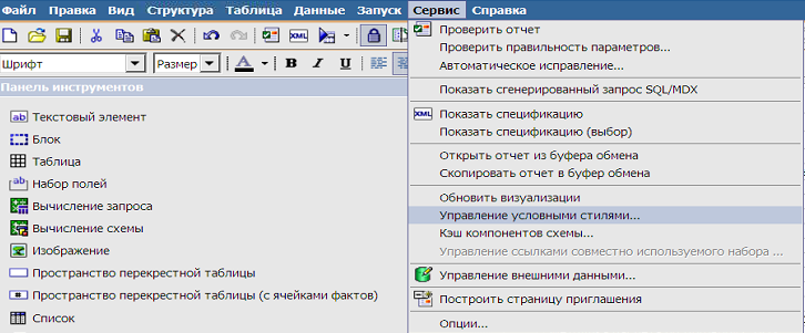 2.Сервис –> Управление условными стилями: