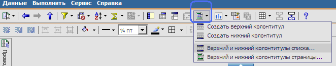 3.Выбрать создание Верхнего колонтитула страницы списка