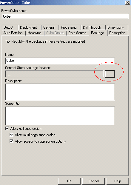 Cognos Transformer | Куб | Настройка публикации / вхождения / пакета |