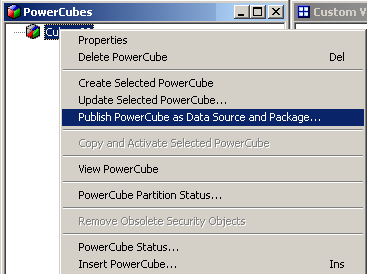 После успешного наполнения / обновления куба, публикуется источник данных и вхождение куба (пакет) на Cognos-портале: