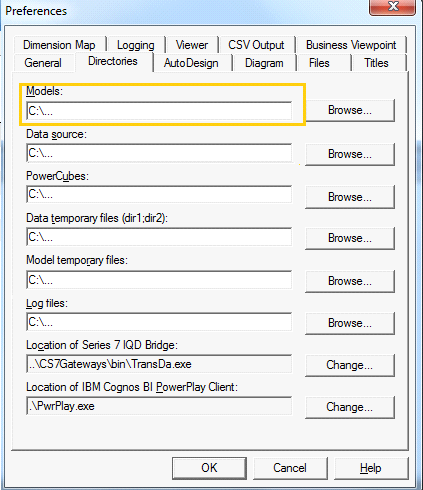 Cognos Transformer –> File –> Preferences –> закладка Directories –> графа Models: