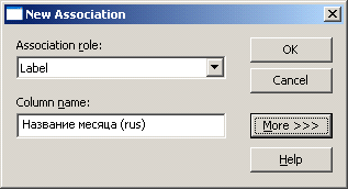 3. Указать Association role как Label и выбрать Column name с помощью кнопки More: