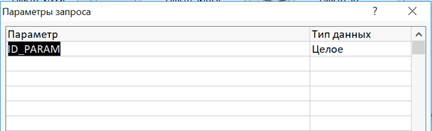 PARAMETERS ID_PARAM Short; SELECT … FROM … WHERE TABLE_LIST.ID=[ID_PARAM];