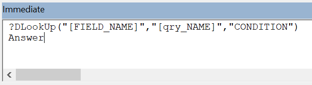 Функция DlookUp позволяет заглянуть в запрос или таблицу MS Access и возвратить значение поля: