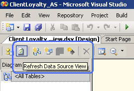 Когда View источника данных открыт, на панели и инструментов есть Refresh Data Source View: