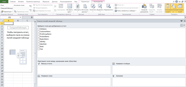 Далее сводная таблица строится в порядке стандартного Excel-меню: