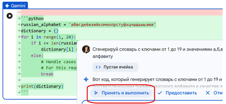 Для экспериментов на питоне – создания программного кода, интерпретации и компелирования – есть Google Colaboratory (см. Добро пожаловать в Colab!), там есть встроенная возможность разрабатывать самому или генерить и отлаживать код с помощью ИИ.