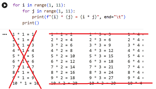 for i in range(2, 10): for j in range(2, 10): print(f"{i} * {j} = {i * j}", end="\t") print()