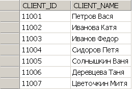 Таблица CLIENTS (список клиентов):