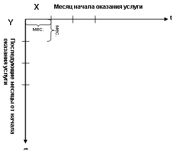 Представим таблицу в формате двух осей координат, по X будем строить месяцы с началом оказания услуги, по Y – месяцы, последующие от начала оказания услуги: