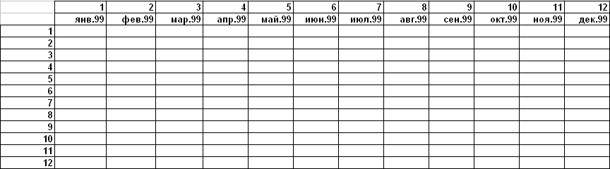Поименуем шапки осей координат, согласно известным данным: начало оказания услуги – январь 1999, длительность оказания услуги – 12 месяцев: