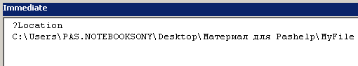 См. принимаемые значения переменных, включая ThisWorkbook.Path, с помощью Окна Immediate, например: