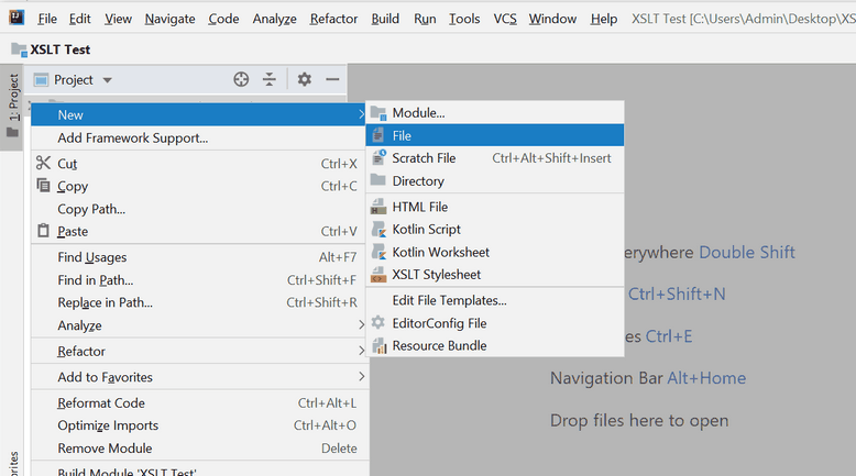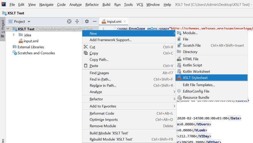 2. Откроем проект – папку "XSLT Test" – в IDEA.
