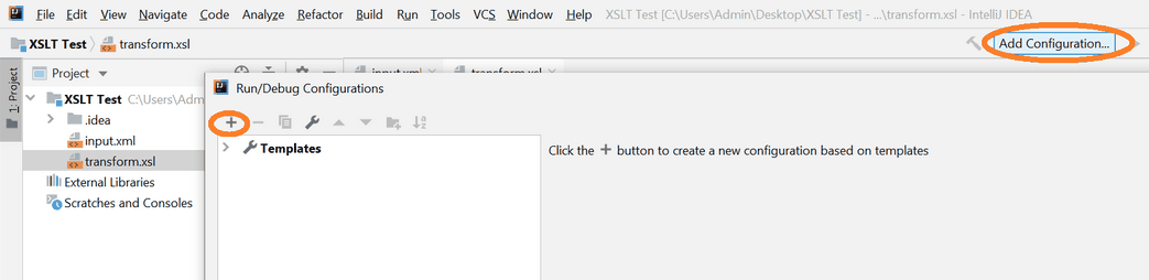 12. Выставим настройки RUN Сonfiguration для проекта "XSLT Test":