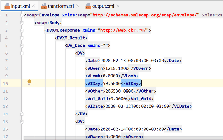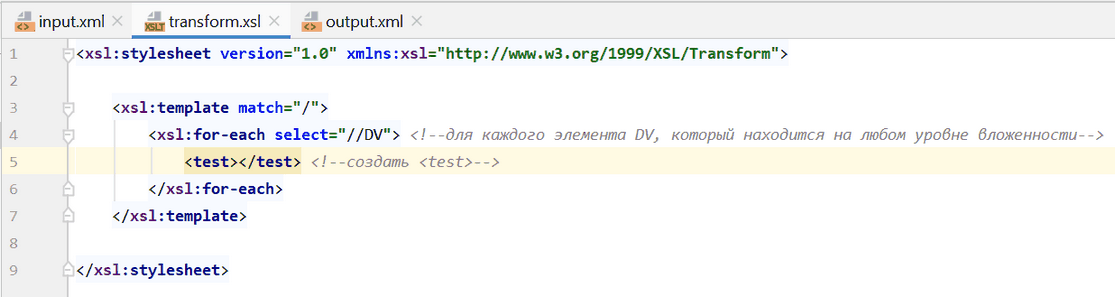 5. Вставим этот XML в файл input.xml: