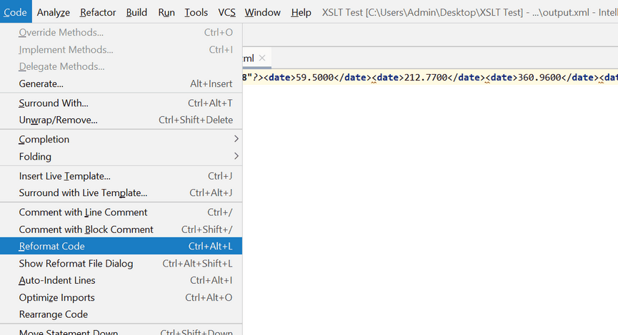 См. также: XSLT настройки в IDEA