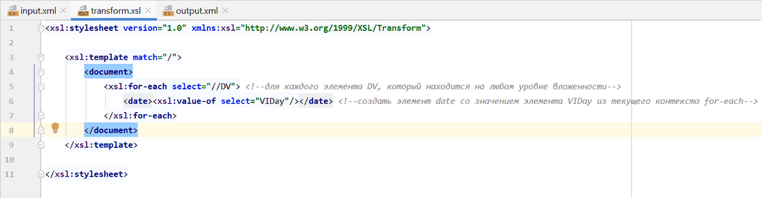 7. Сохраним новый XSLT Stylesheet как transform:
